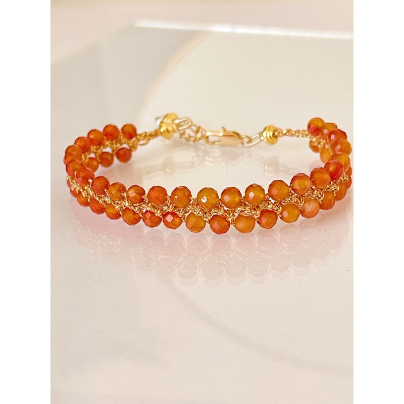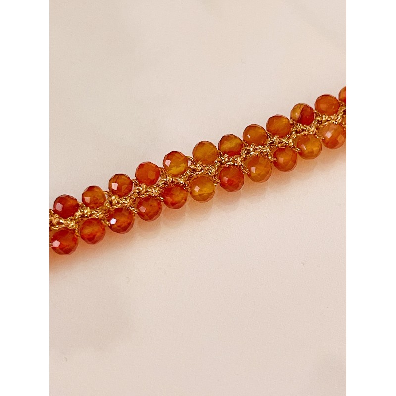 Chaque pièce est composée de cinquante pierres fines minutieusement facettées, choisies pour leur éclat et leur pureté. Le fil utilisé est un véritable bijou à lui seul : un fil japonais doré de haute couture, dont l’âme contient un fil d’argent, offrant au bracelet éclat, souplesse et raffinement.