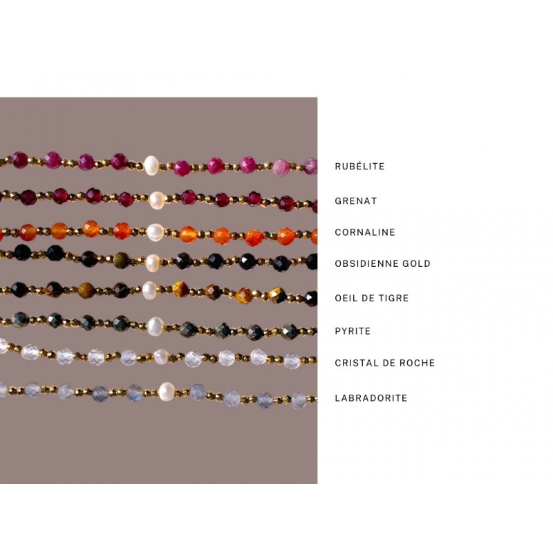 Nos créations sont imaginées et créées à la main dans notre atelier en France. Les pierres fines étant naturelles les nuances peuvent légèrement varier.