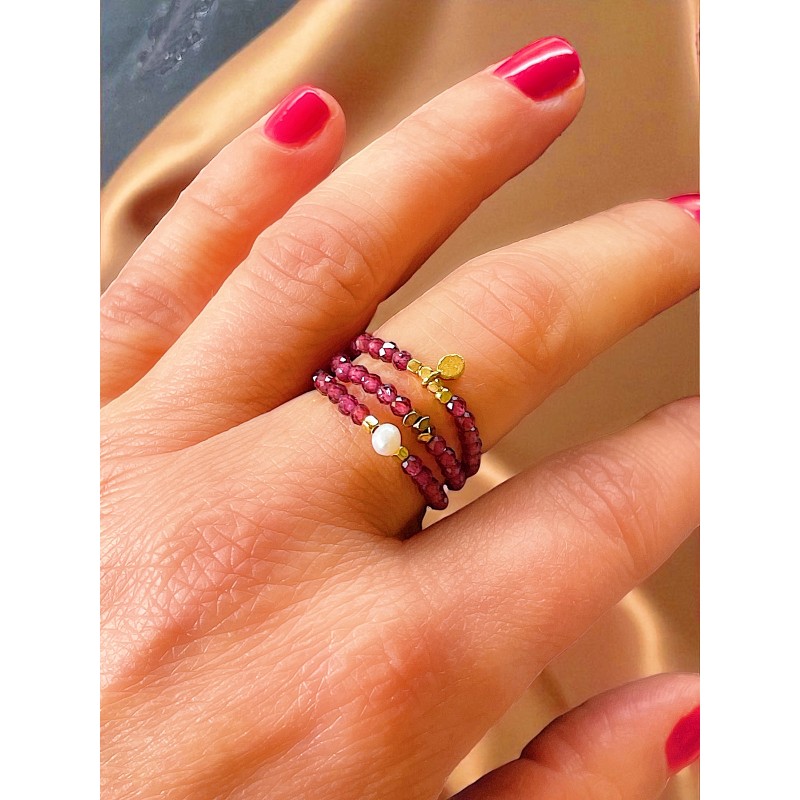 Les bagues LOU sont montées sur un fil extensible, souple et résistant. Grâce à ce montage, elles s’adaptent confortablement à la majorité des doigts, du 52 au 56 alliant confort et raffinement au quotidien.