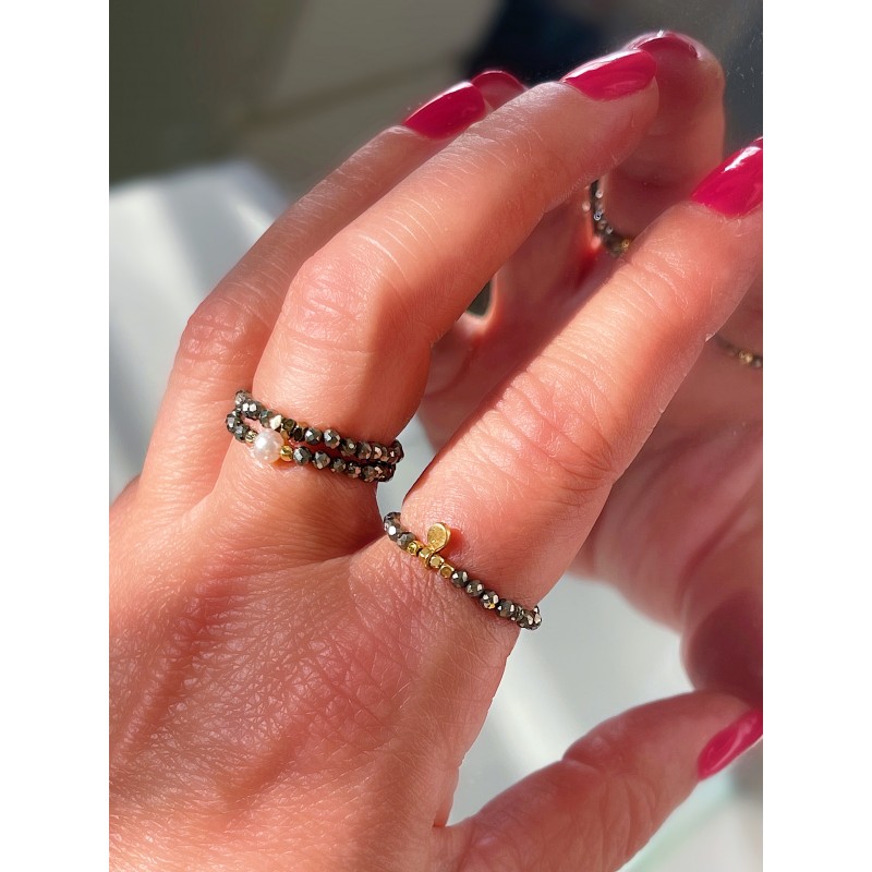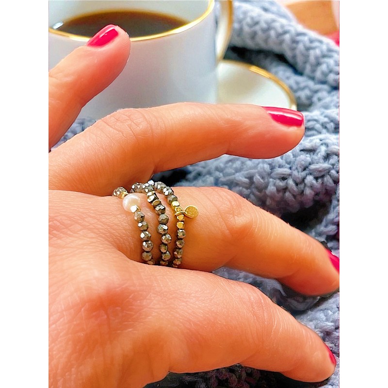 Les bagues LOU sont montées sur un fil extensible, souple et résistant. Grâce à ce montage, elles s’adaptent confortablement à la majorité des doigts, du 52 au 56 alliant confort et raffinement au quotidien.