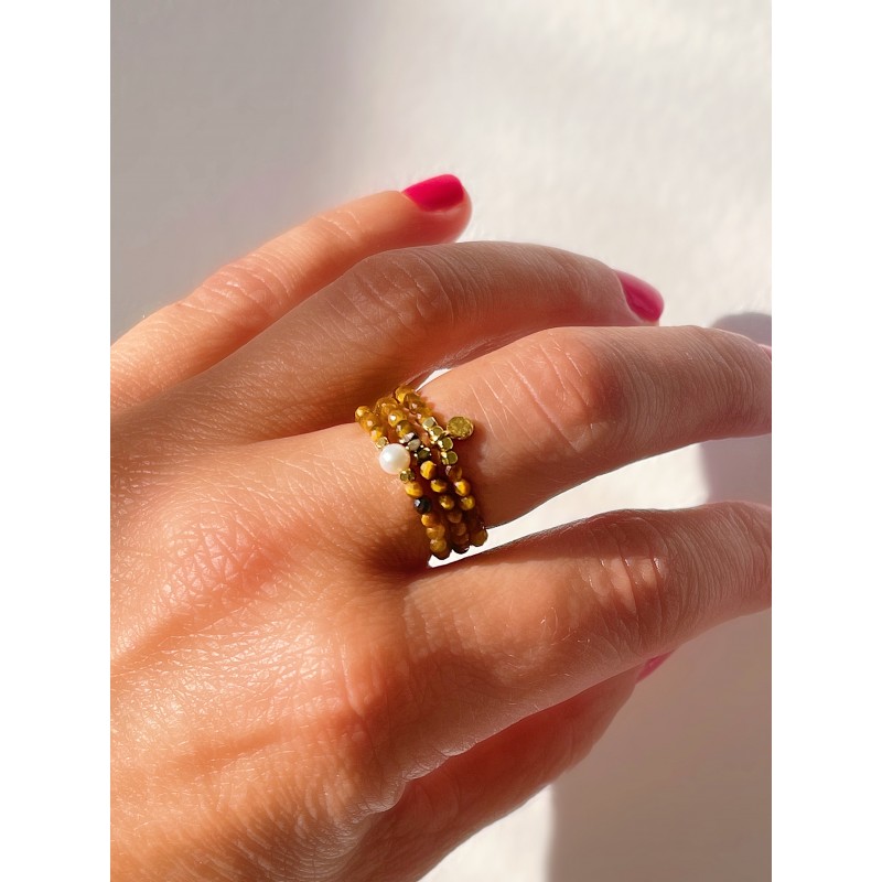 Les bagues LOU sont montées sur un fil extensible, souple et résistant. Grâce à ce montage, elles s’adaptent confortablement à la majorité des doigts, du 52 au 56 alliant confort et raffinement au quotidien.