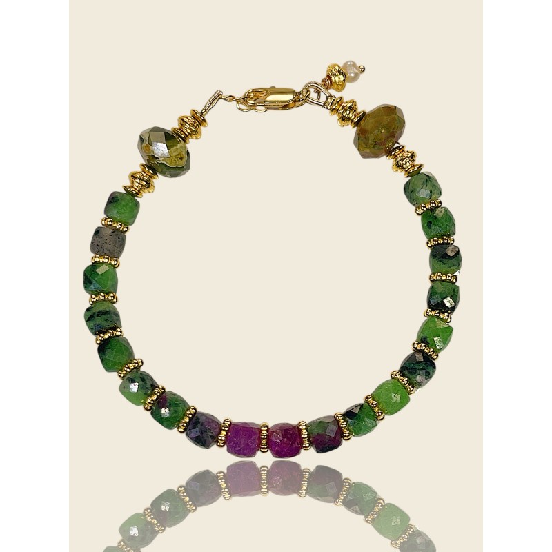 Isidore, caractère affirmé et subtile, le bracelet Isidore joue les contrastes avec le taillage des pierres fines entre rondelles et cubes facettées. Un jeu d’équilibre entre géométrie, texture et lumière, pensé pour révéler la beauté naturelle des gemmes.