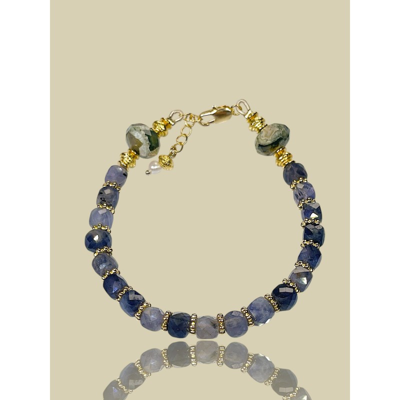 Isidore, caractère affirmé et subtile, le bracelet Isidore joue les contrastes avec le taillage des pierres fines entre rondelles et cubes facettées. Un jeu d’équilibre entre géométrie, texture et lumière, pensé pour révéler la beauté naturelle des gemmes.