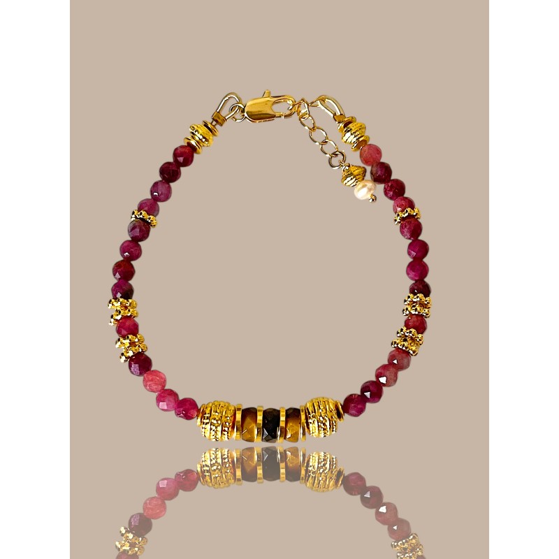 Ce contraste entre la finesse des gemmes et la présence marquée de l’amulette confère au bracelet GUSTAVE une identité forte et magnétique - un bijou à la fois typé, lumineux et de plein de caratère.