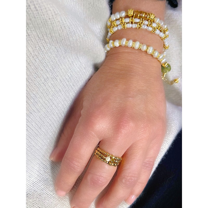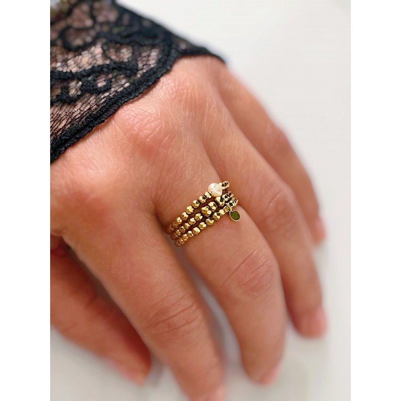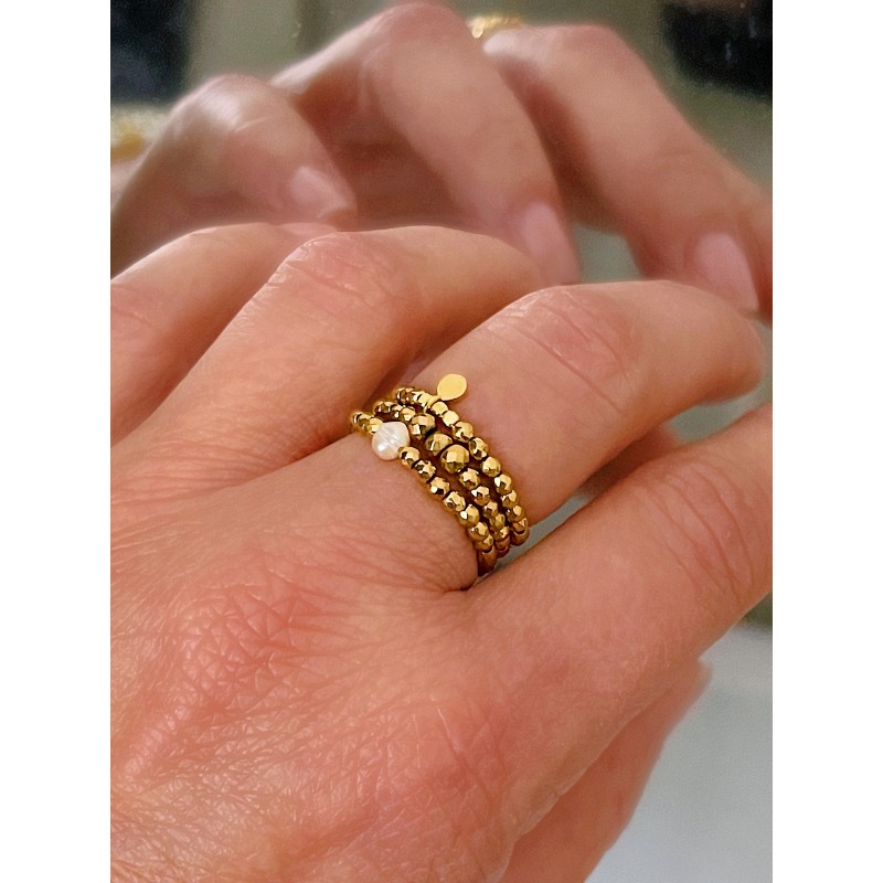 Les bagues LOU sont montées sur un fil extensible, souple et résistant. Grâce à ce montage, elles s’adaptent confortablement à la majorité des doigts, du 52 au 56 alliant confort et raffinement au quotidien.